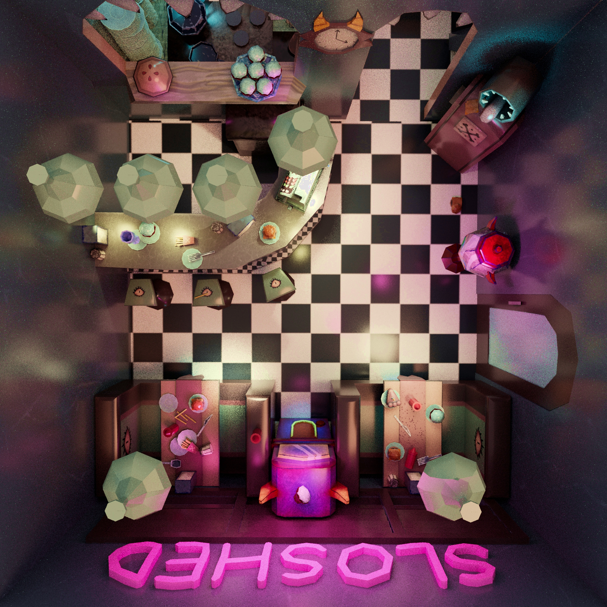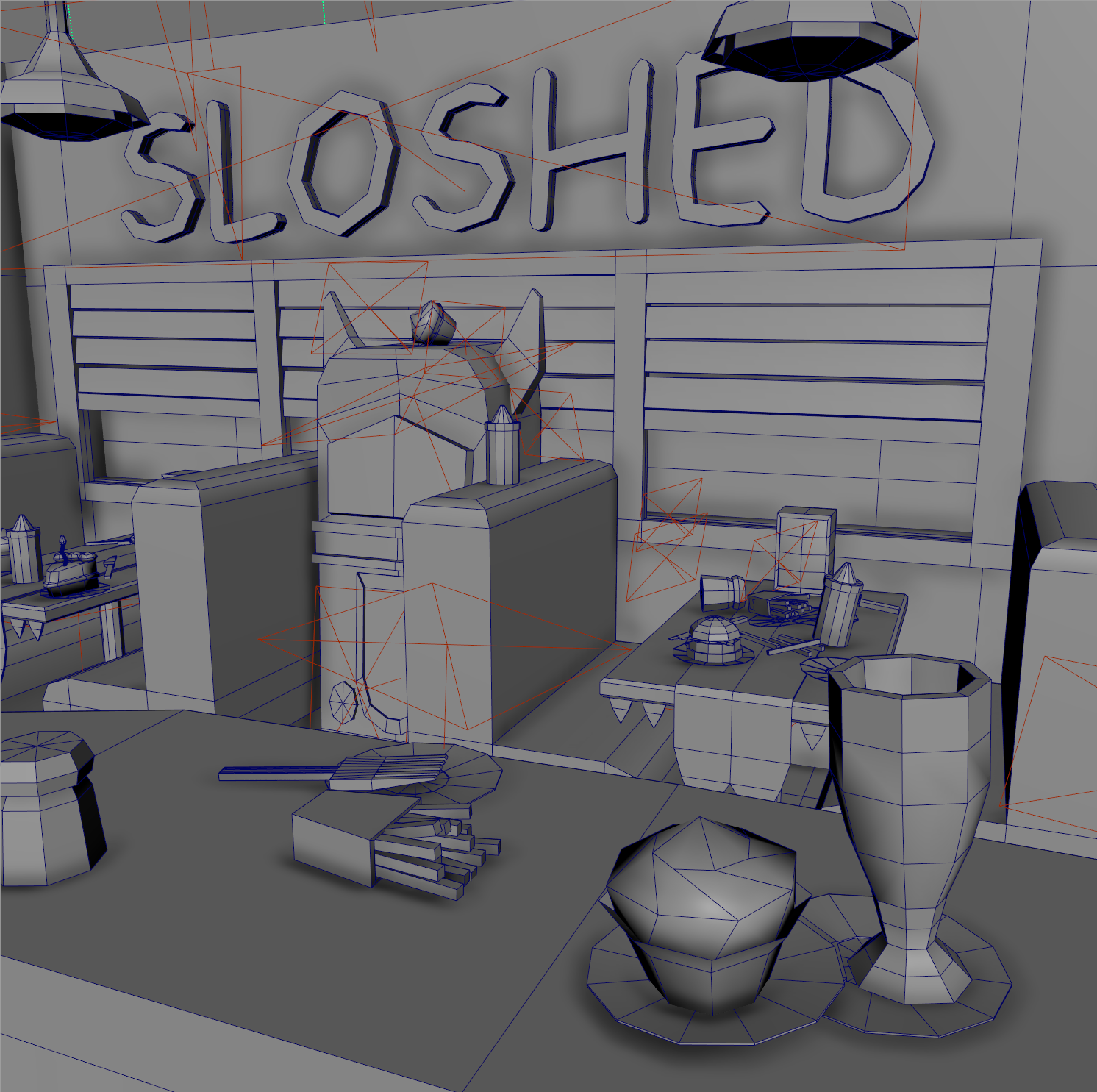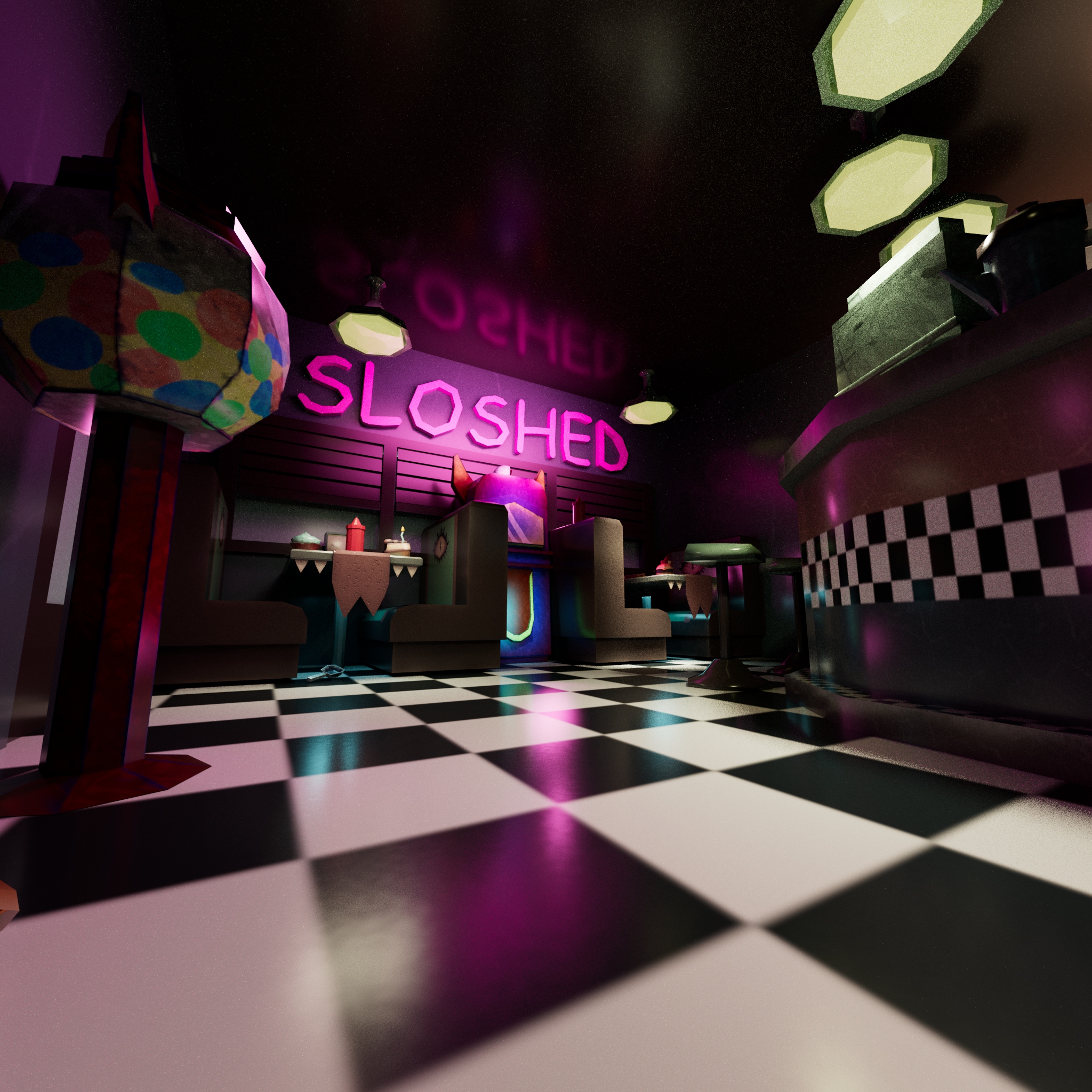 After the jam, I revisited the project to light and render the environment in Maya, shown in the images below.