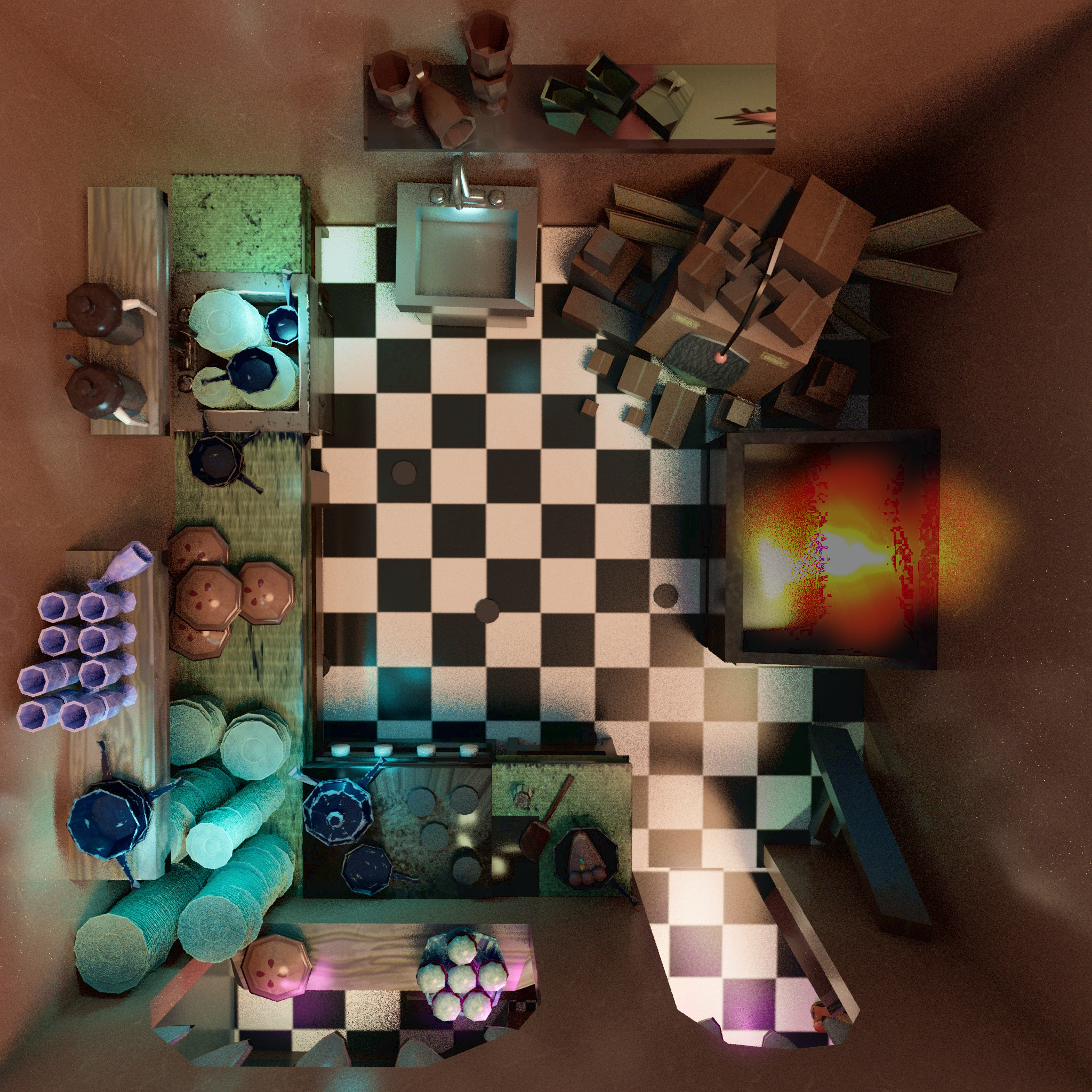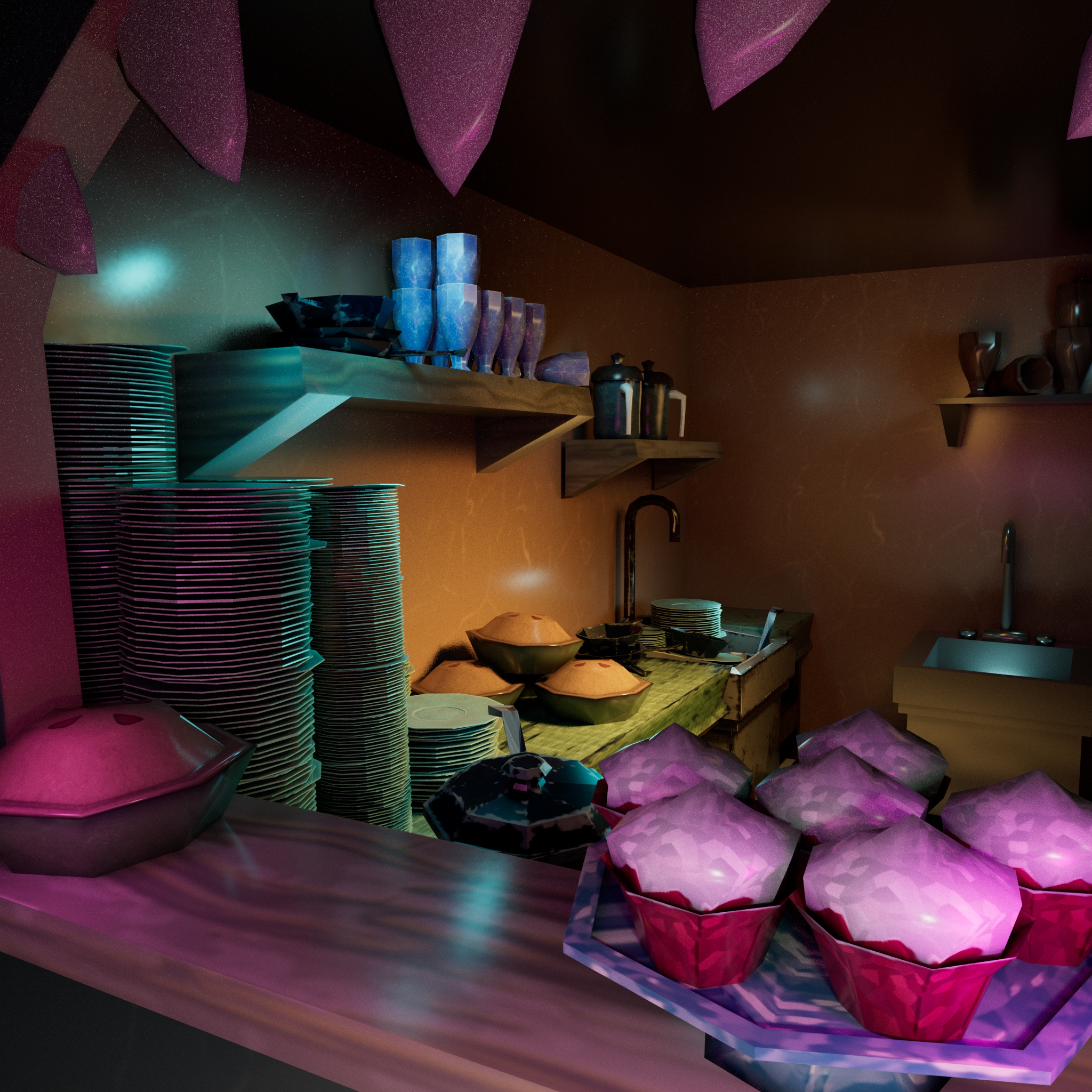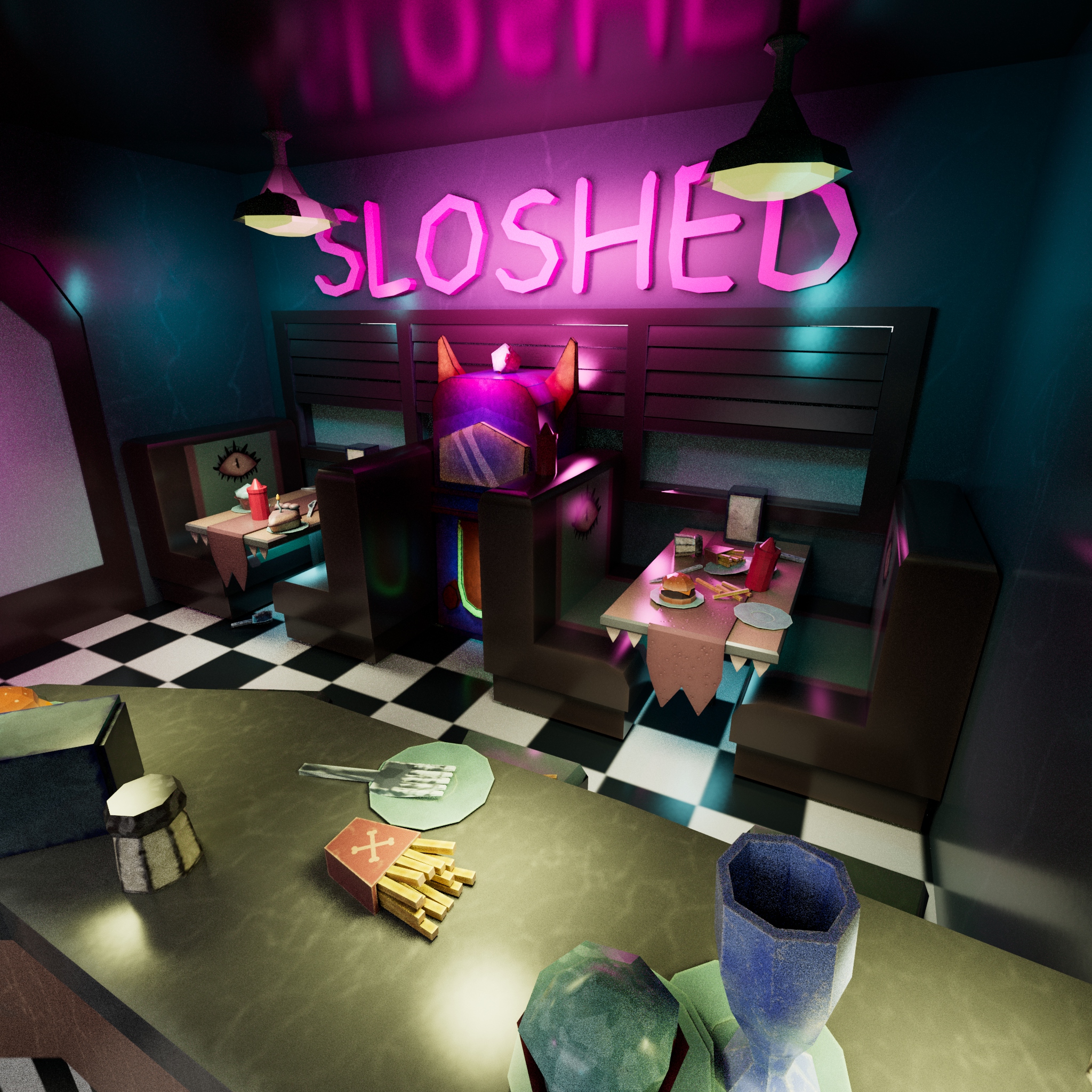 After the jam, I revisited the project to light and render the environment in Maya, shown in the images below.