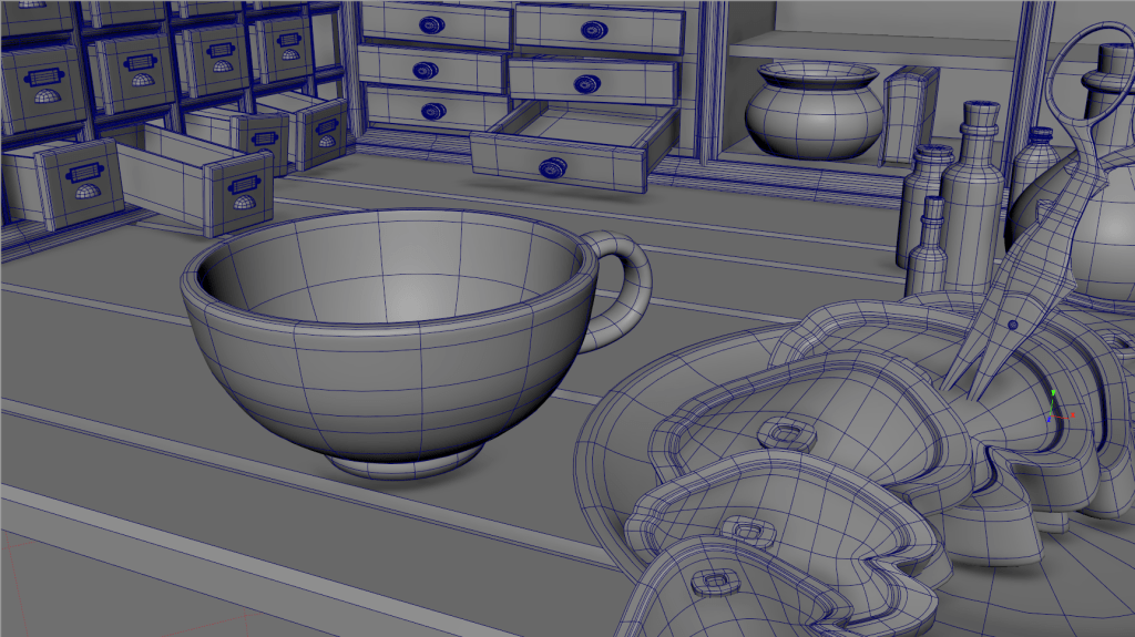 Modeled and uv’ed in Maya. Initial blocking pass with lighting test.